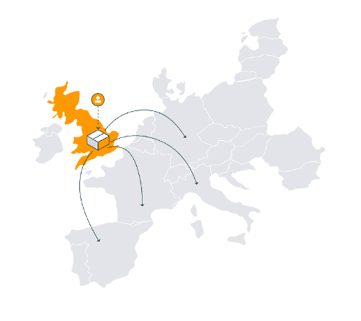Previously known as the European Fulfilment Network, Remote Fulfilment between the UK and EU allows you to sell your products across borders quickly without having to send inventory into those countries yourself and without the requirement to register for VAT in the destination store. Remote Fulfilment between the UK and EU is available between the UK and Germany, France, Italy and Spain.